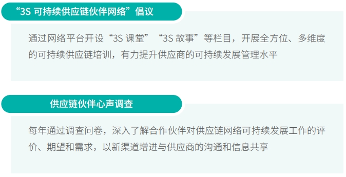 我们开发可一连供应链培训包,重视供应商的生长与作育,通过举行培训、分享最佳实践等方法,资助内部采购职员和外部供应商提升可一连采购意识与能力,实现企业与供应商之间的恒久价值创立和效果共享。