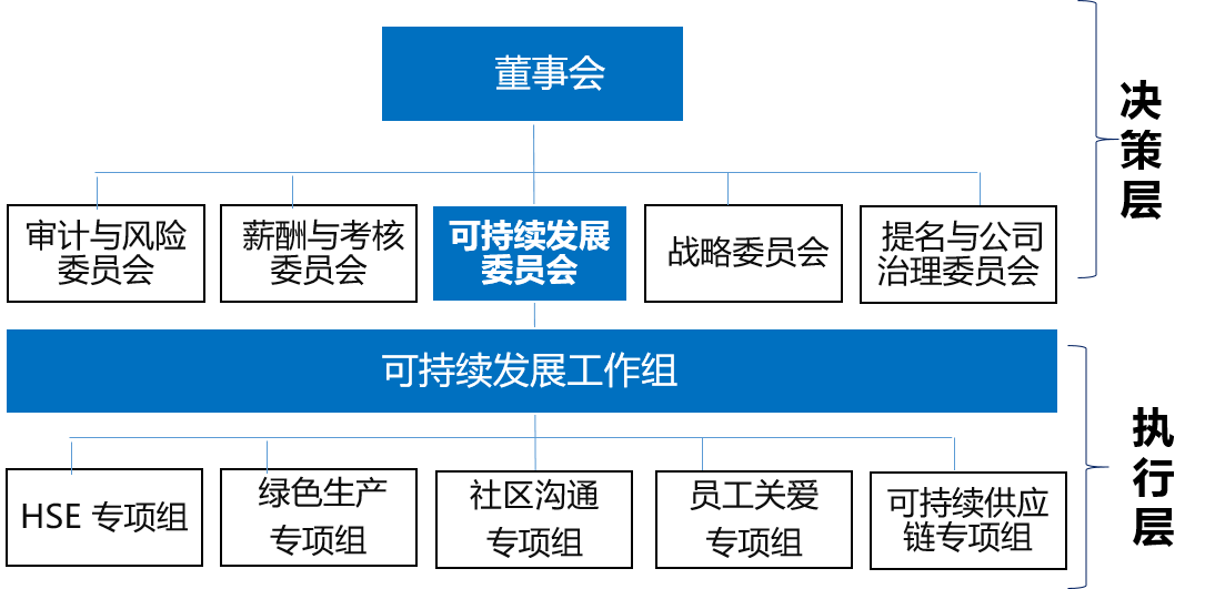 尊龙凯时董事长杨华任可一连生长委员会主席,董事、总司理刘红生与自力董事徐永前为可一连生长委员会委员。委员会下设“可一连生长事情组”,并通过HSE、绿色生产、社区相同、员工关爱、可一连供应链五个专项小组开展详细事情。