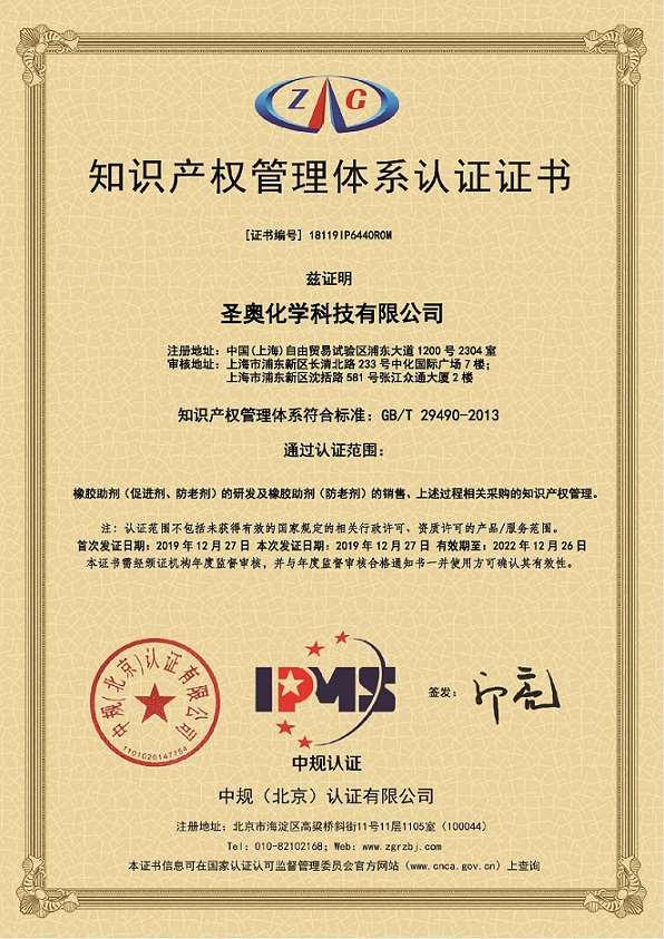 ͨ¹ý´Ë´Î֪ʶ²úȨÖÎÀíϵͳÈÏÖ¤£¬±ê¼Ç×ÅÊ¥°Â»¯Ñ§ÖªÊ¶²úȨϵͳ½¨Éè¾ß±¸ÁËÇкϹú¼Ò±ê×¼µÄÖÎÀíˮƽ£¬Í¬Ê±Ò²³ä·ÖÌåÏÖÁ˹«Ë¾ÖªÊ¶²úȨÖÎÀíÄÜÁ¦ÔڿƼ¼Á¢ÒìÀú³ÌÖеÄÒýÁìºÍÖ§³Ö×÷Óã¬ÓÐÖúÓÚÔöÇ¿ÆóÒµ½¹µã¾ºÕùÁ¦£¬Ò»Ö±ÌáÉýÊÖÒÕÁ¢ÒìÄÜÁ¦¡£