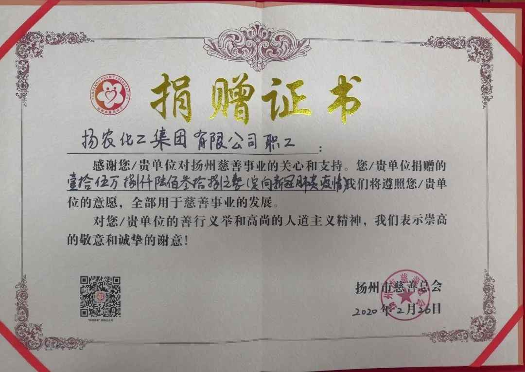 克日,尊龙凯时下属扬农集团全体职工响应公司党委建议,起劲捐钱助力新冠肺炎防治相关事情。本轮募捐捐钱人数3529人,捐钱金额共计835179.11元,所召募款子已所有捐给扬州市慈善总会以及各子公司所在地的慈善总会、红十字会,用于抗击新冠肺炎疫情。